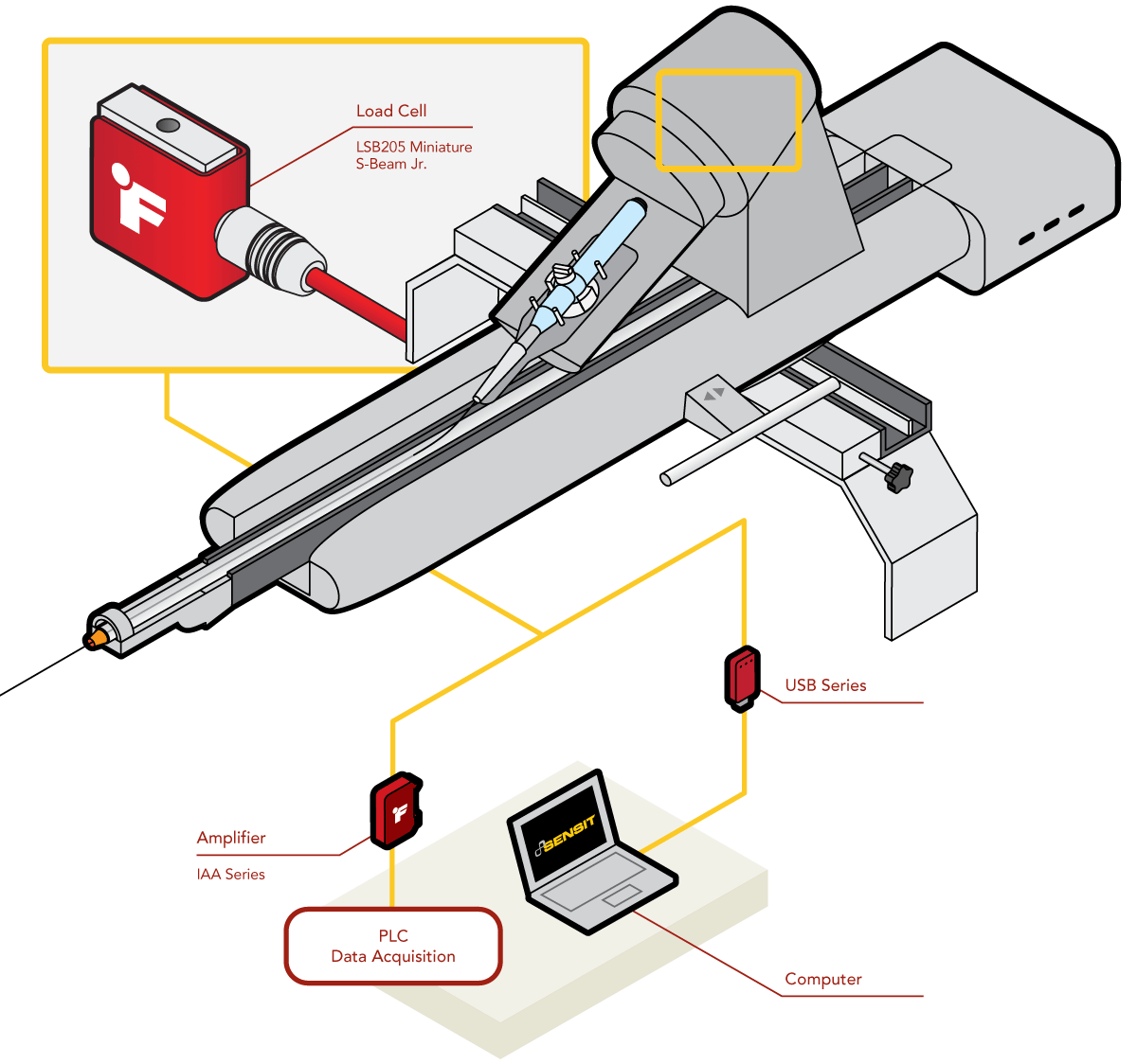 4、測量反饋可以通過FUTEK 的 USB 采集方案流到中央控制系統。